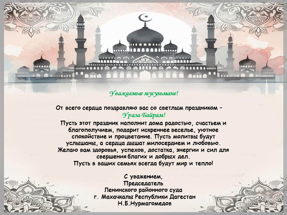 | Поздравление с праздником Ураза-Байрам! | версия для печати |